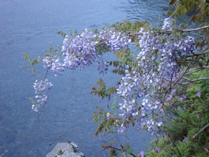 の岩肌に自生したツツジやフジが目につき、特に岩肌のツツジは水の流れに調和し『い