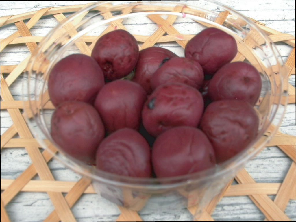 今年の初夏に収穫した「大粒よりはこまい(小さい)、小梅よりは大きい」