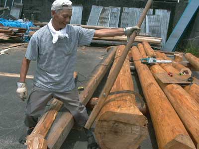 る姿が。杉の皮をむくのは雨の日のほう