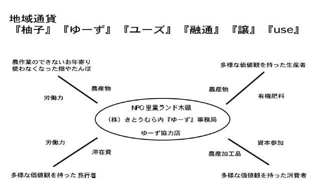 株式会社きとうむら内にある「ゆーず事務局」が通貨を発行します。柚子や農産物の管理、剪定、収穫などの作業料としては、NPO法人里業ランド木頭(生産者ネットワーク)を通じ「ゆーず」が支払われます。